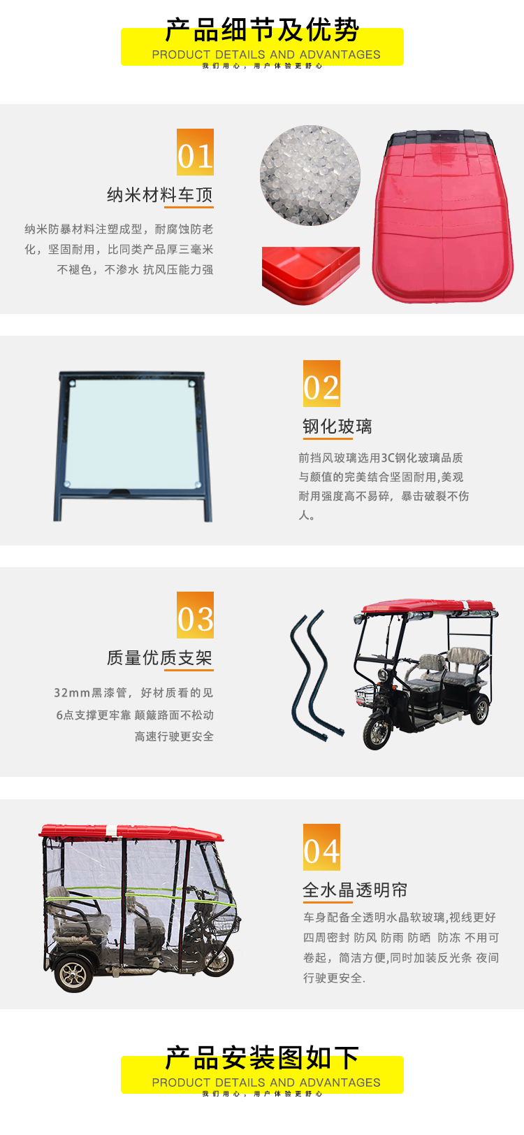 溫情提示:由于車篷材料、工藝和組合不同將會造成車篷價格有所變動,