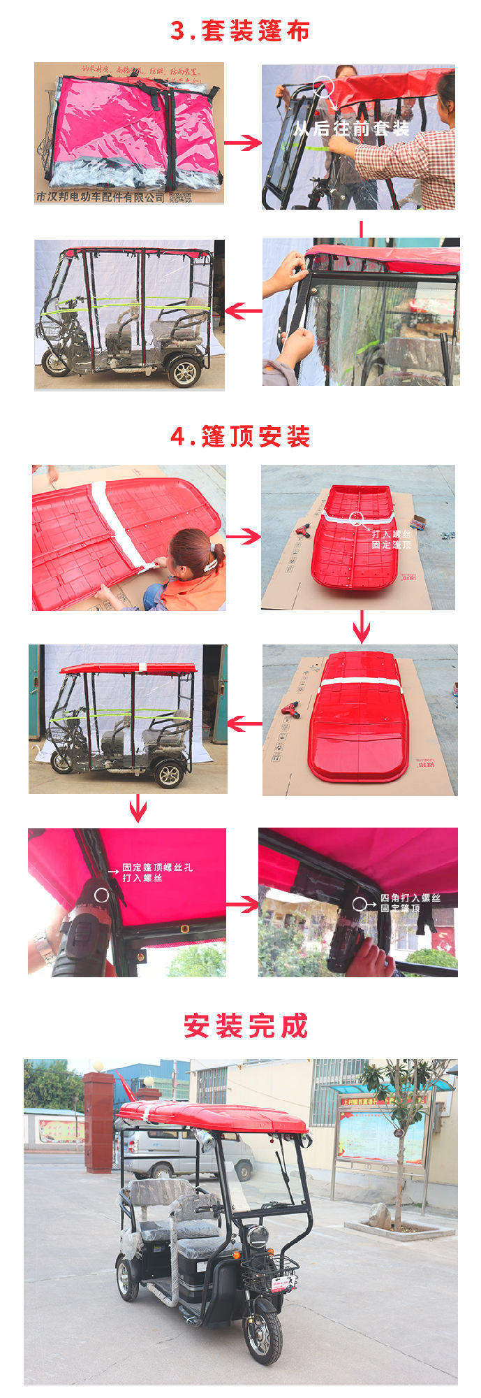 安裝三輪摩托車車篷,只需五步!